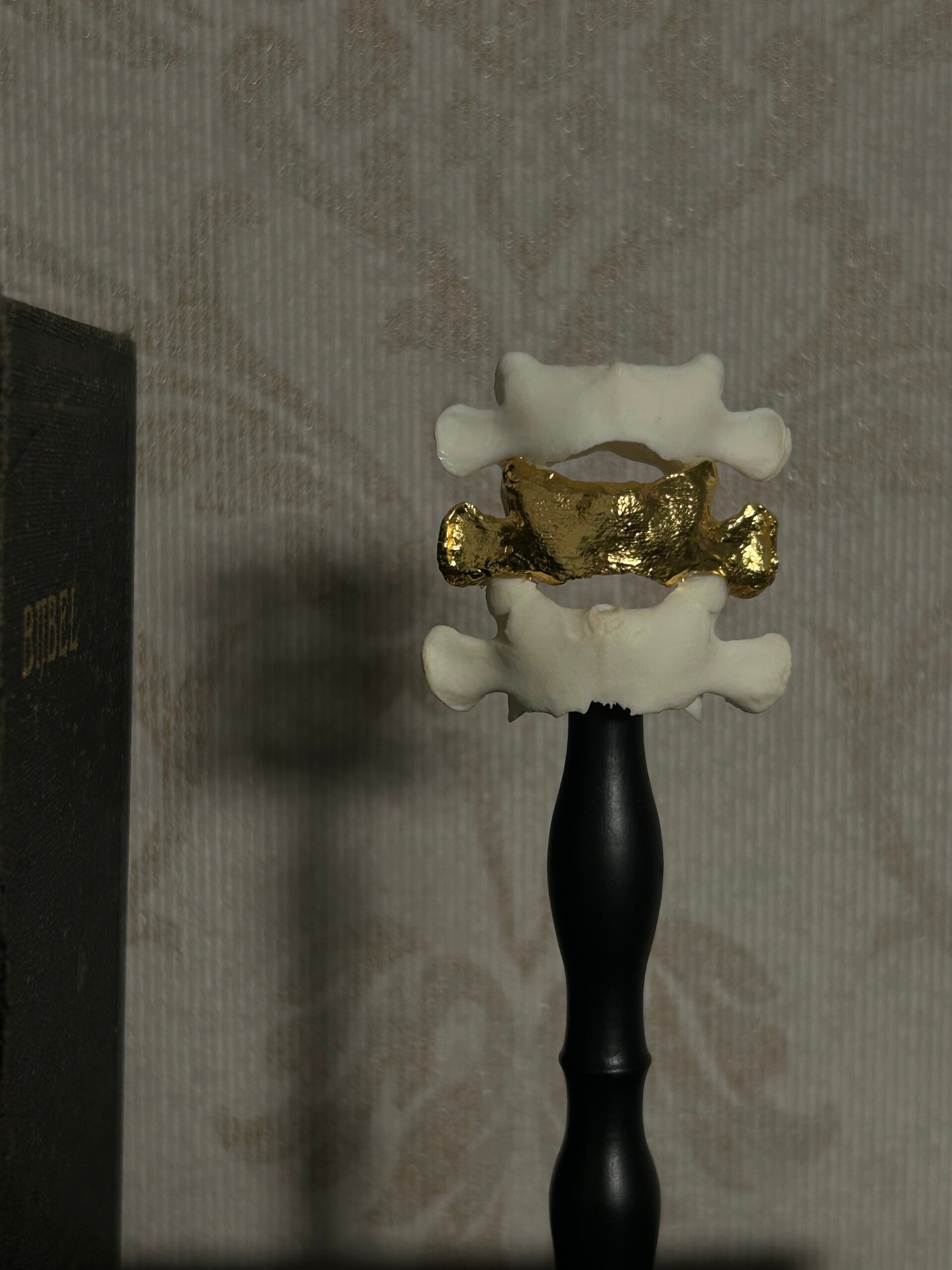 24 carat gilded vertebrae on a base.