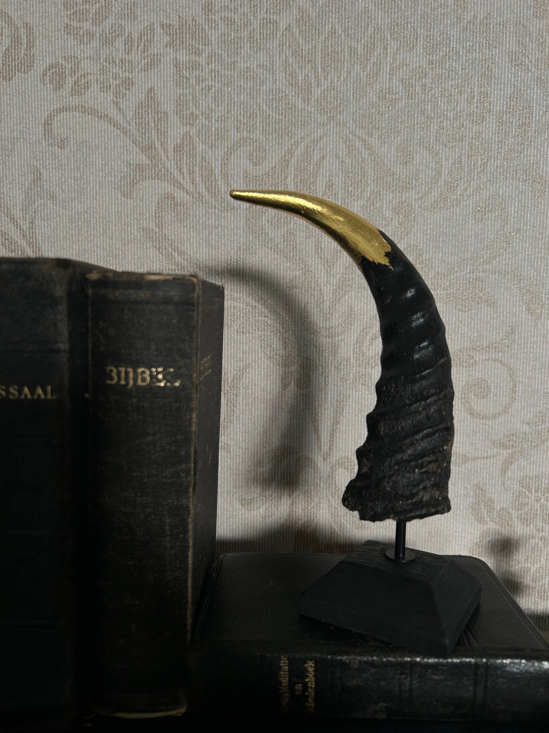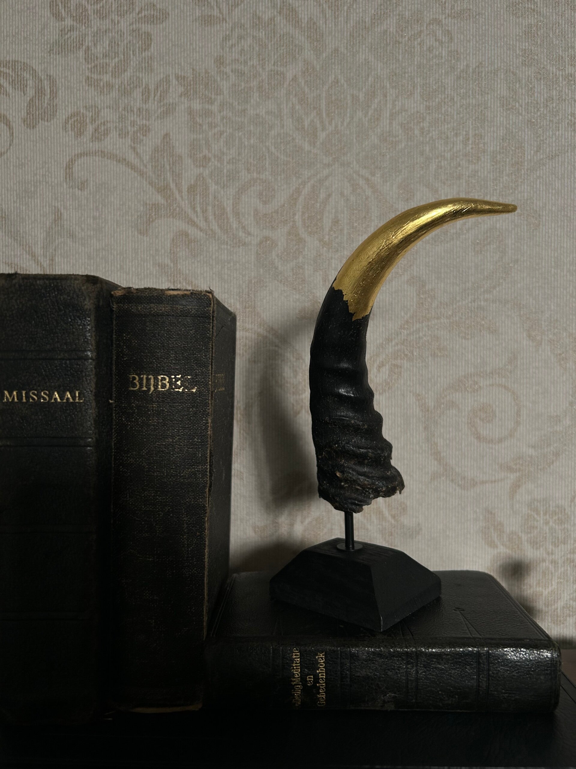 24 carat gilded buck horn on base.